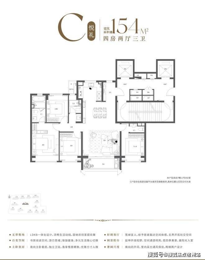 全景面宽+无界通厅+高附加值+收纳天花板,130㎡的面积直逼140㎡的尺度感!