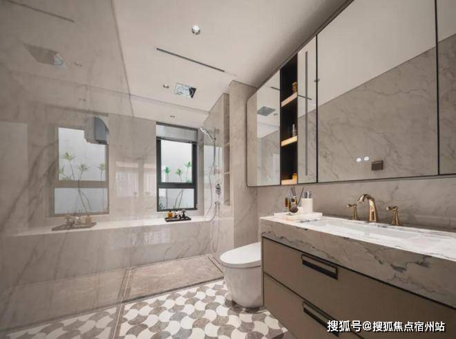 唯宝 (或同等品牌)台盆、主卫 科勒 (或同等品牌)复古龙头、 高仪 (或同等品牌)智能马桶、奢石台面、镜柜美妆冰箱、线性风暖……每一个细节,招商都为业主考虑到了。