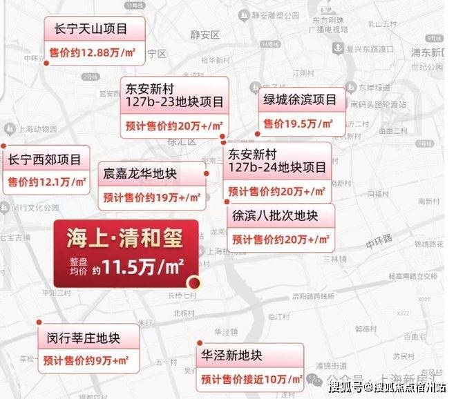 海上清和玺由两幅地块组成,(徐汇长桥xh315-10地块、xh313-16地块),项目四至范围:东至龙川路,南至罗香路,,西至长桥路,北至地块边界,临近中环高架!