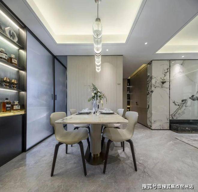 客餐厅一体化,南连同尺度宽景阳台,将生活的奢度打开。金茂定制壁布或墙纸交标结合芬迪白岩板客厅背景墙,地面采用马可波罗(或同等品牌)大板砖,以定制设计感提升空间立体感。阳台外窗采用大面积窗墙比,使得室内整体采光面、亮度、通风效果得到提升。张江金茂府官方售楼处电话为400-8854-706