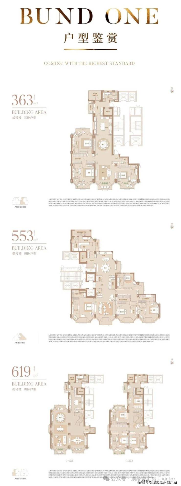 住宅部分全部大平层(复式)设计,单套面积约370-1500㎡,全部精装交付。