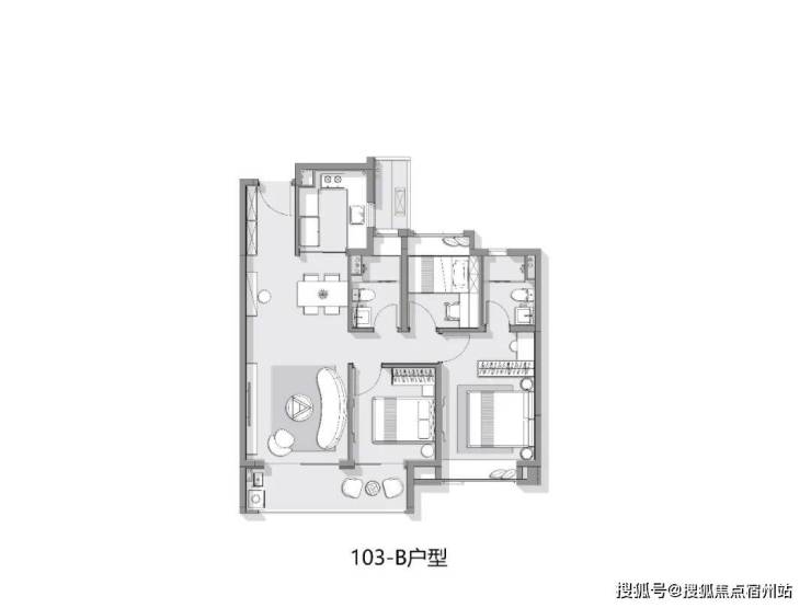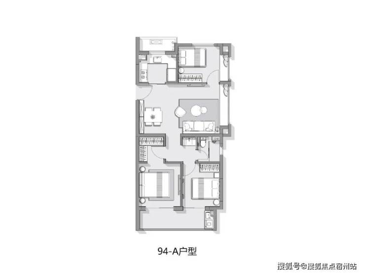 主卧套房设计保证了主人的私密空间。再加上南向三开间,全屋瞰景飘窗的设计,这个户型的尺度感、实用性、采光度等方面的表现都相当出色。