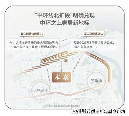 1、板块价值:项目占位淞南板块,作为中环沿线10年断供的板块,地理位置优越,背靠杨浦、咫尺江湾,不仅承接了五角场、北外滩的外溢红利,更以18 号线长江西路站(在建中,距离项目直线距离仅约200米)构建「主城生活圈」,这种「板块优势+ 地铁 TOD」的地段配置,在市场波动中始终是资产安全垫;