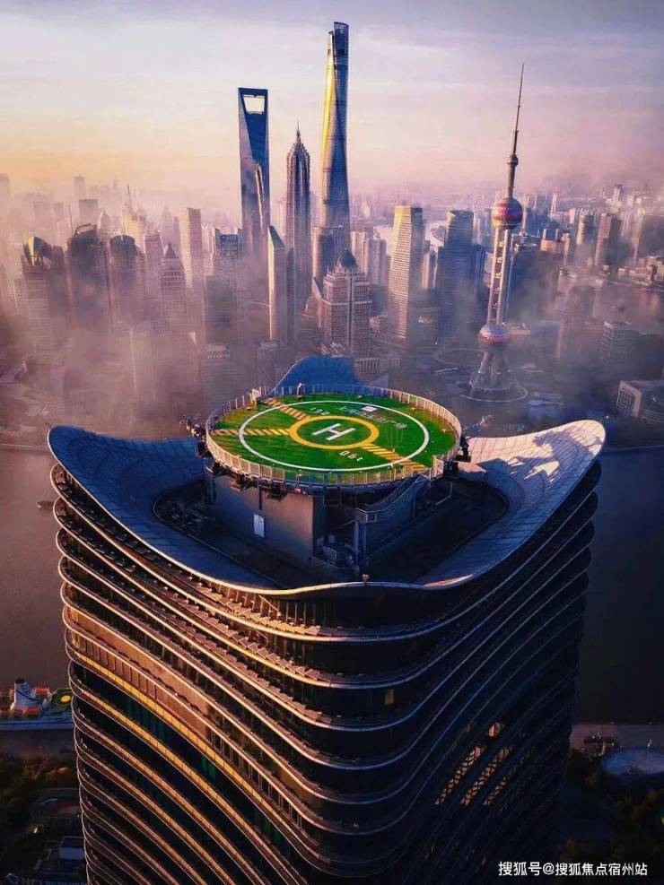 项目南边的楼栋顶部设计了一座上海唯壹的住宅停机坪,太过于豪横了 。