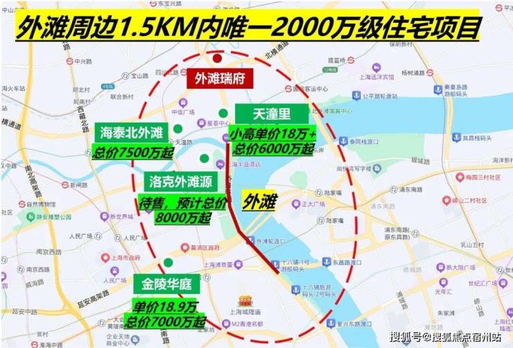 今年六批次土拍,绿城竞得北外滩新宅地,溢价率超过46%,未来售价预计突破20万元,它的位置就在「外滩瑞府」东侧约1KM。