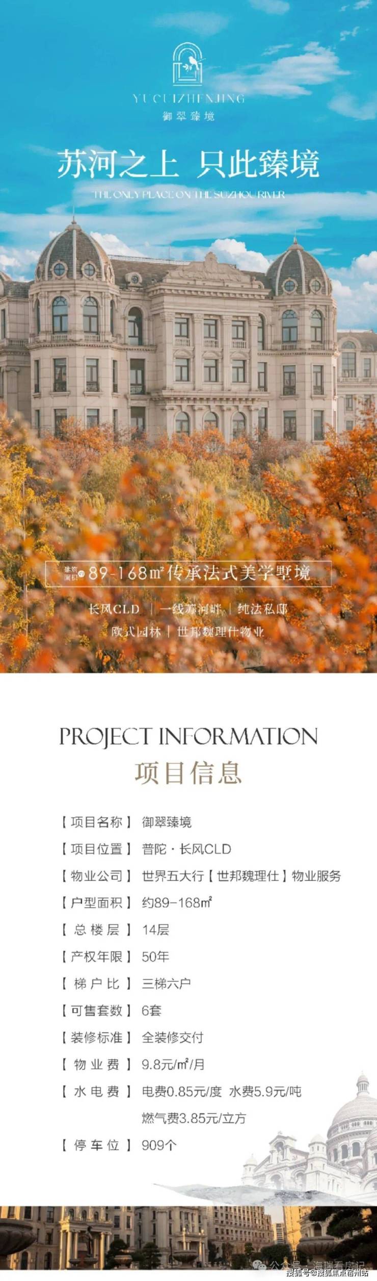 苏州河畔精装公寓「御翠臻境」推出89-168平!法式风格!不限购通燃气!