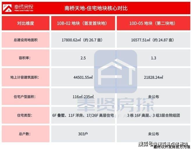 大家最关心的 第二块地(10D-05地块) 到底长什么样,首先我们来看看与第一宗地块的对比数据。