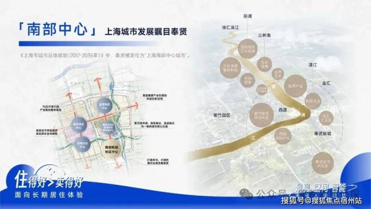 《上海市城市总体规划﹙2017-2035年﹚》中, 奉贤被定位为“上海南部中心城市”。以东方美谷和数字江海国际化产业园区, 打造全国领先的产业集群,规划建设有约2.53平方公里“上海之鱼”、约32公里“十字水街”岸线、全长约50公里田字绿廊,形成“国家生态园林城区”。