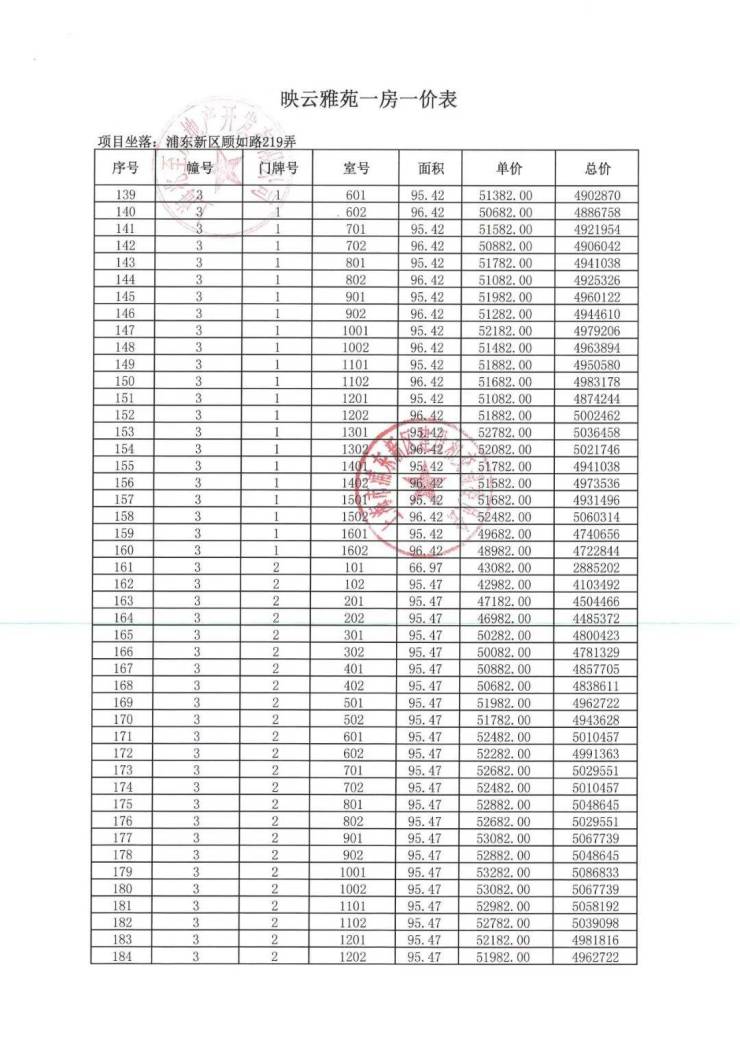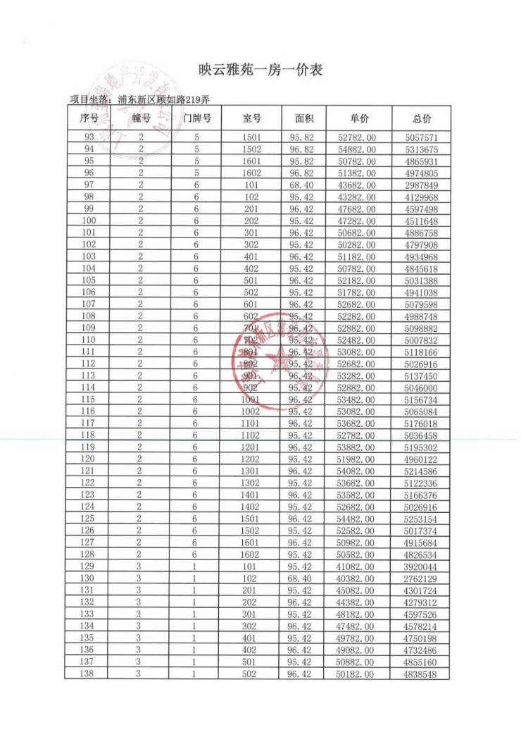 一房一价表