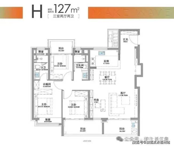 “南向双阳台+南北双飘窗”,构筑真3房户型!
