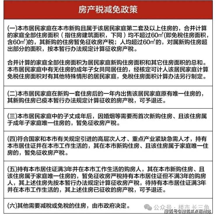 非沪籍家庭首套房暂免房产税;第二套及以上按家庭总面积计算,人均免税60平方米。