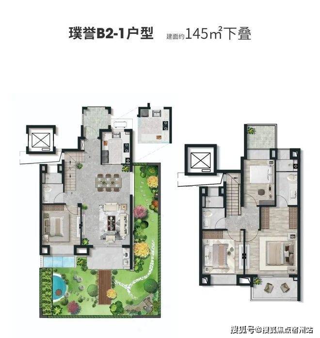 建面约 123-145㎡叠墅产品,四层真叠墅设计,上叠有露台、下叠带庭院,是改善家庭、三代同堂的理想之选,兼顾私密性与舒适度,实现 “有天有地” 的江南墅居梦想。