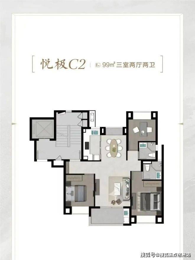 二层:静谧寝区,私享时光:双套房设计,主卧面积达 25㎡,配备独立卫浴、步入式衣帽间、南向露台,清晨可于露台品茶赏景,夜晚独享静谧休憩空间。次卧同样为套房设计,兼顾家人居住舒适度,老人、孩子均可拥有独立私密空间。