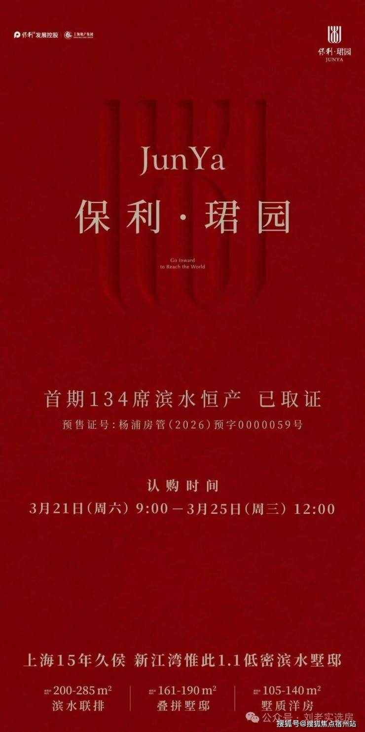 保利发展在杨浦新江湾城的新项目正式定名为「保利·珺园」,即将推出市场稀缺的低密度生态住区。项目涵盖建面约105-140㎡墅质洋房、165-190㎡奢享叠墅以及200-285㎡滨水合院,三大业态共筑理想生活蓝图。
