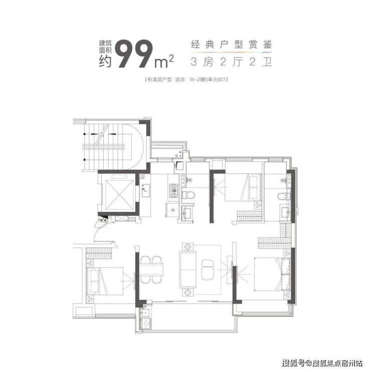 建面约99㎡3房2厅:横厅设计,采光满分!