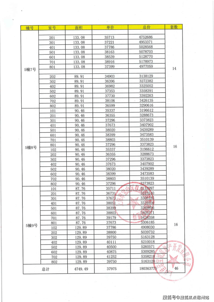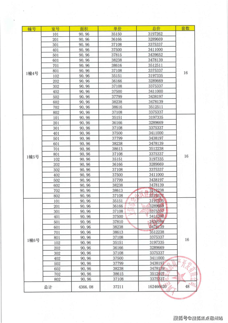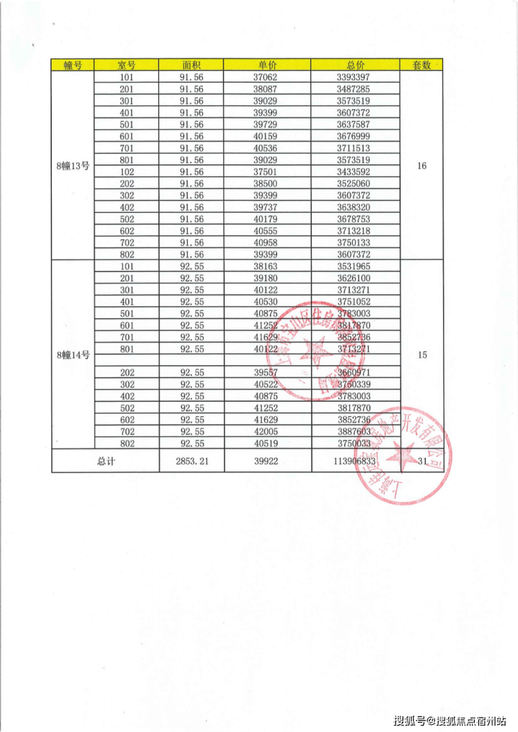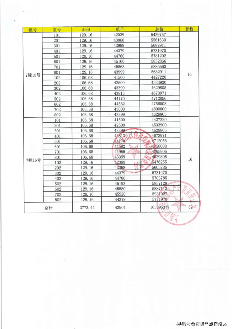 上期一房一价表: