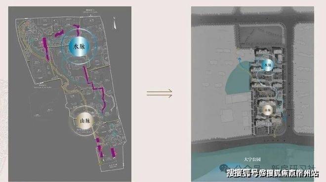 社区内部,设计团队以豫园为灵感蓝本,运用现代手法重新诠释豫园的“山脉”与“水脉”,打造出一座立体起伏的山水园林。