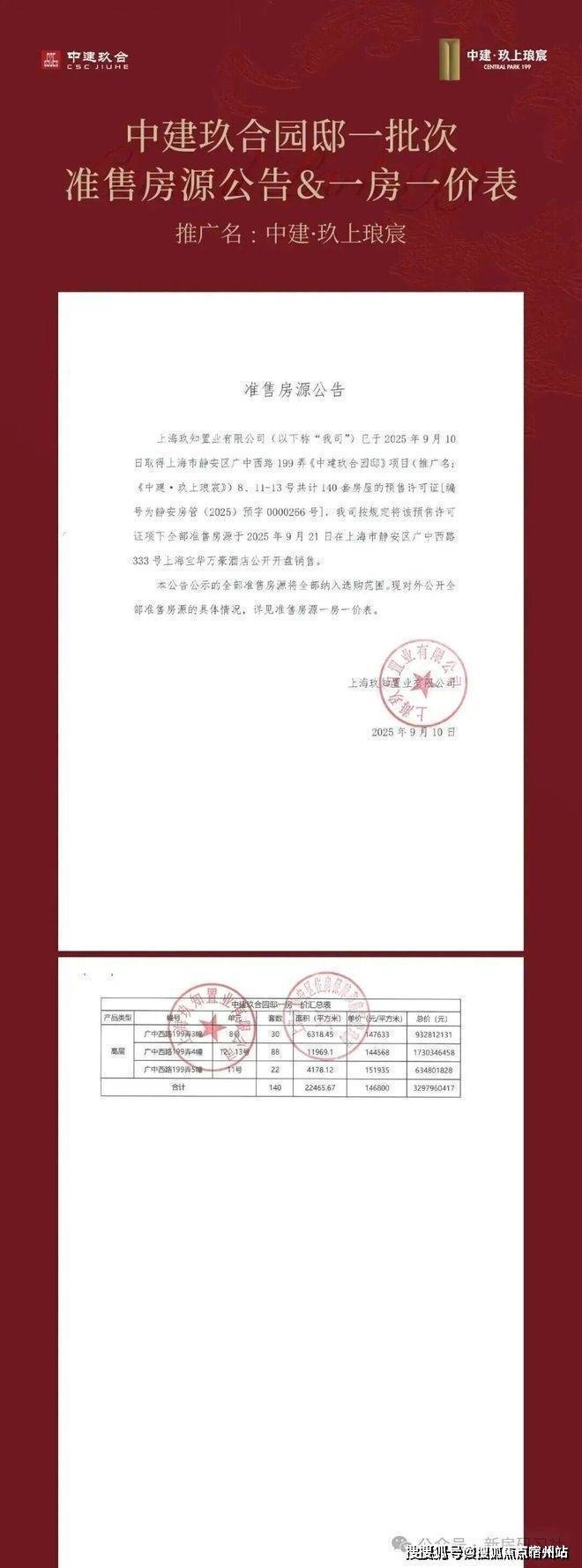 静安大宁【中建玖上琅宸】加推套约128-410㎡3-5房;上期均价14.68万/㎡!!