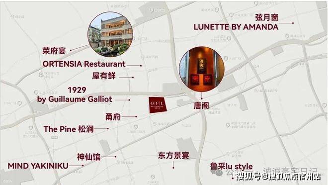 以高福云境为圆心,约两公里范围内,神仙馆,ORTENSIA Restaurant,The Pine 松涧,1929 by Guillaume Galliot,MIND YAKINIKU,弦月窗LUNETTE BY AMANDA,东方景宴…多家黑珍珠、米其林餐厅等高级餐厅汇聚。