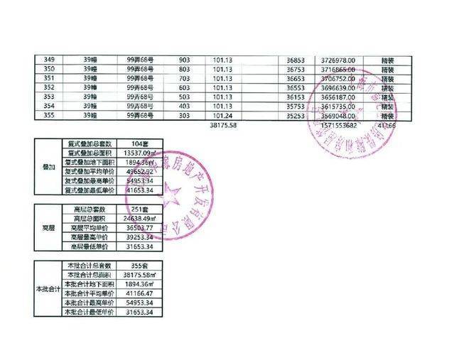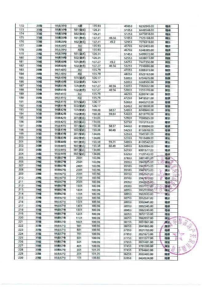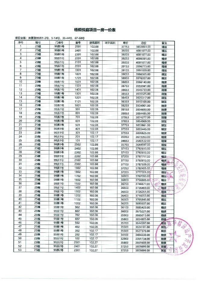以下为项目最新一房一价表