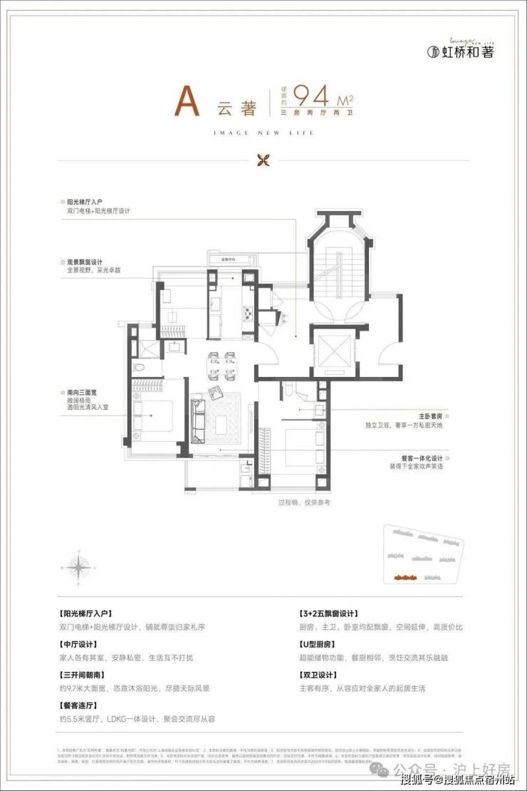 LDKB客餐厨阳台一体化设计 , 整个南向三开间面宽拉伸到约9.7米,升维更轩阔的公区会客厅。飞机户型的空间排布,空间充裕但不浪费,将每一平米更大化利用。