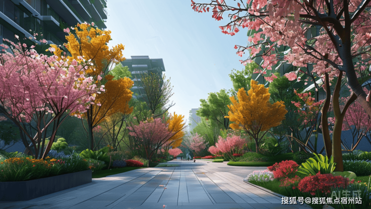 社区内部打造的“两轴一林多重花巷”景观体系,堪称自然与人文的协奏曲:南北双滨水带如同流动的翡翠项链,串联起樱花巷、银杏巷等主题园林,春可赏樱、秋可观枫,全龄活动区则巧妙植入夜光跑道、星空草坪等场景。特别值得一提的是其“树冠覆盖率”达45%,相当于每个家庭都拥有一片专属的天然氧吧。