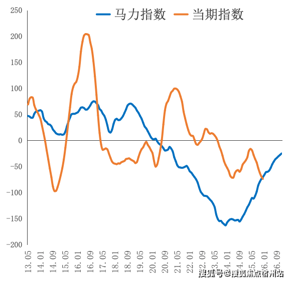 根据历史规律,马力指数领先当期指数一般会超过12个月,这里我们就按照领先12个月来进行时间的调配,就是在时间上把马力指数前移了12个月。