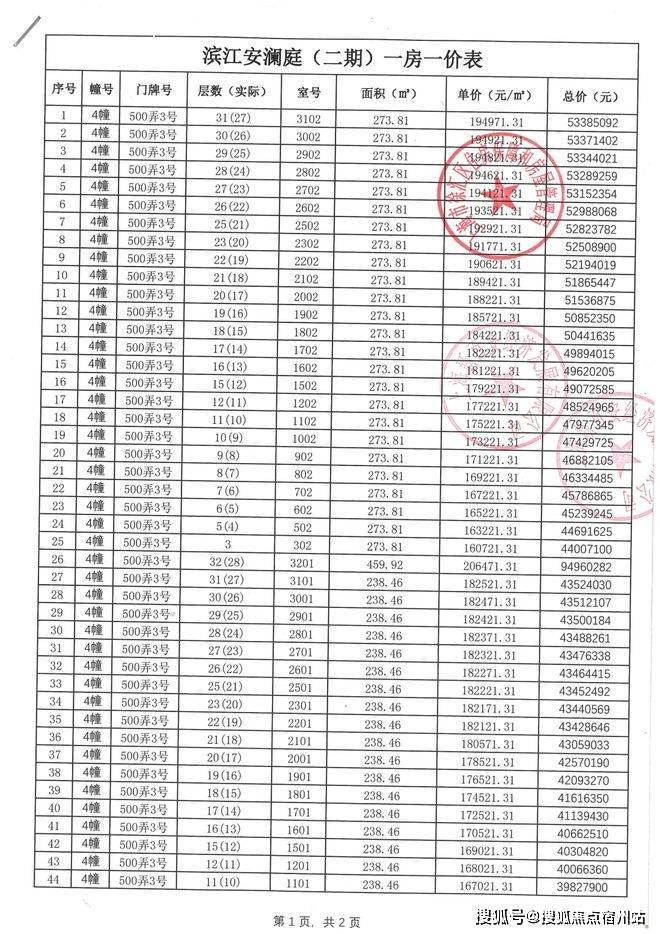 一房一价表: