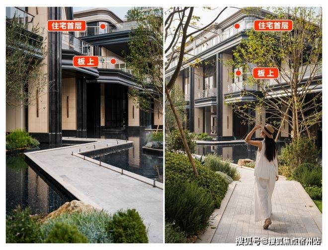项目全域抬高约4米,在板上形成“新的地面”,住宅组团如浮岛般与城市喧嚣隔离。更在此基础上打造架空层(可参考下图临展的空间示意),住宅首层实际标高相当于传统楼盘4-5楼,从根本上解决了低楼层采光不足、通风不畅的痛点,让每一户都能享受通透舒适的居住体验。