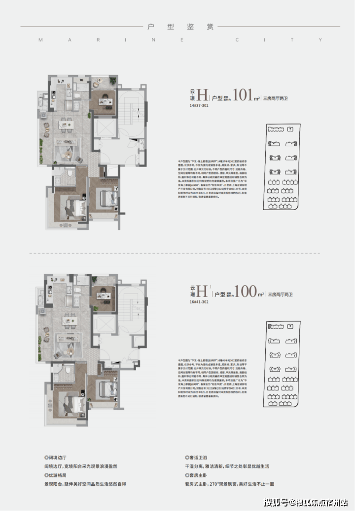 瞰景边套H户型:享有“江景+中轴+墅区”这三重景观资源