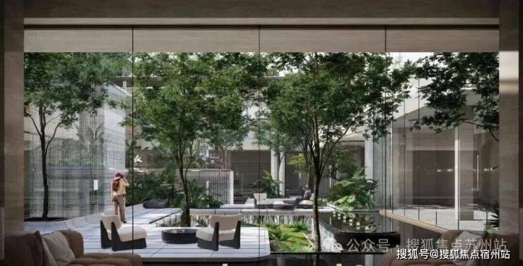 双轴线的设计,充分拓宽了视野面与观赏点位,环形回廊、精神游廊与下沉庭院通过立体景观平台相融,又创造出隔岸听泉的诗意场景。在每个重要生活触点,业主都能拥享独特景观和欣赏视野。