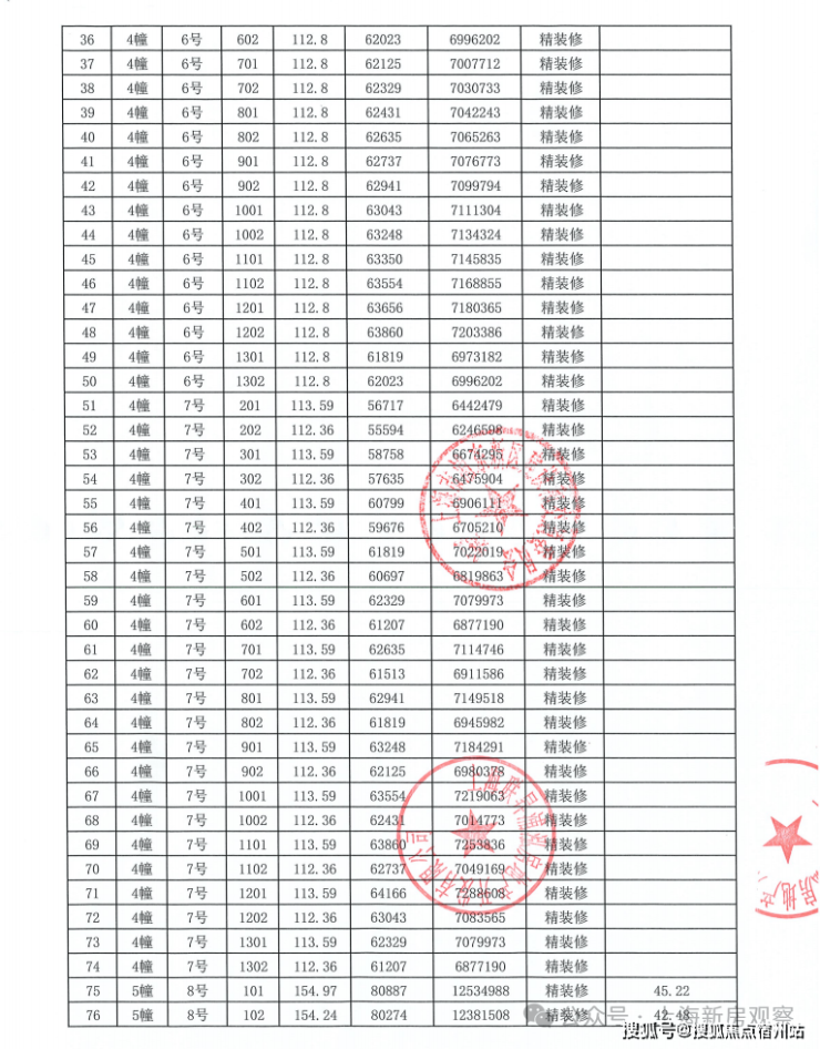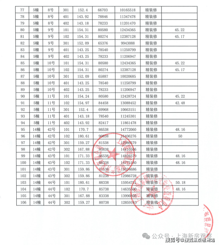 上期一房一价表如下: