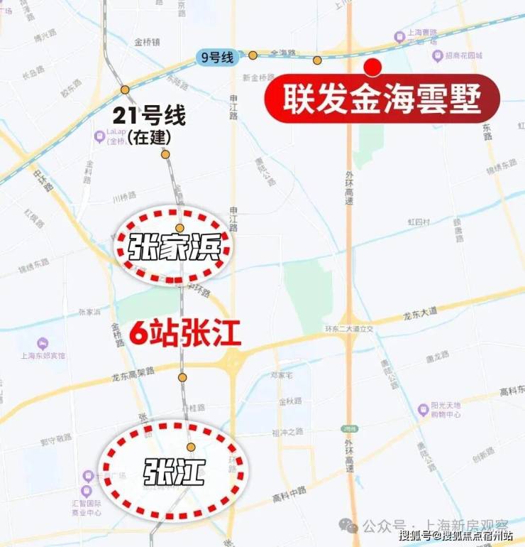 未来21号线开通后,从距离项目最近的金海路出发,4站张家浜、6站张江。