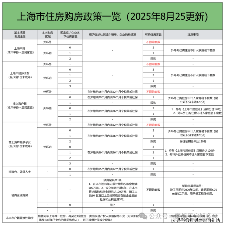 一、上海2025年8月最新限购政策汇总
