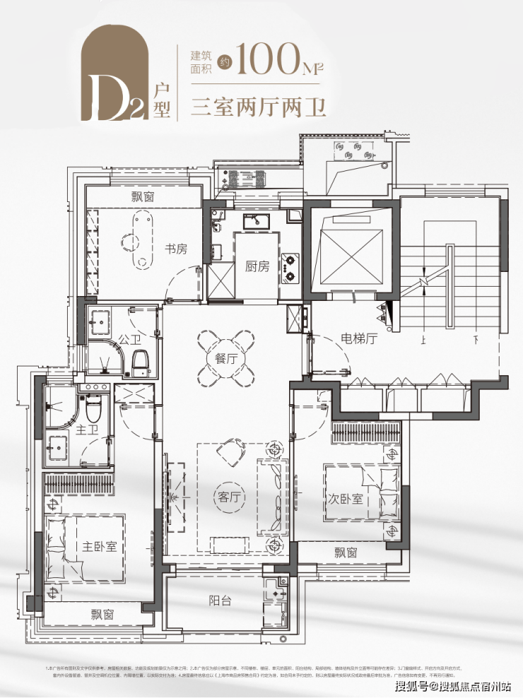 另一套建面约100㎡飞机户型 ,同样做了三房两卫,户型方正,几乎无过道设计,每一寸空间都没有浪费,舒适不局促。