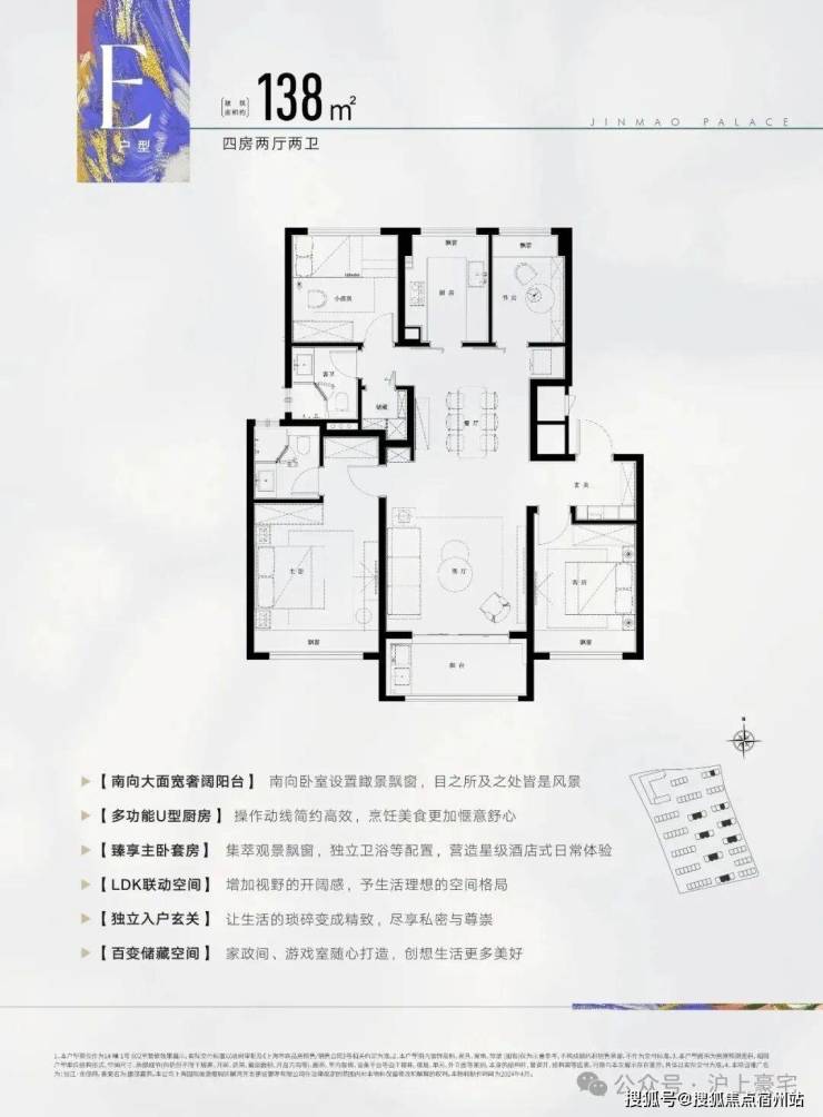 项目洋房全系无连廊设计,得房率高。如建面约138㎡户型,四叶草布局,南北通透,实得面积相当于一般高层住宅145㎡户型。除此之外,这个户型还有“真改善”不可或缺的三重优势: