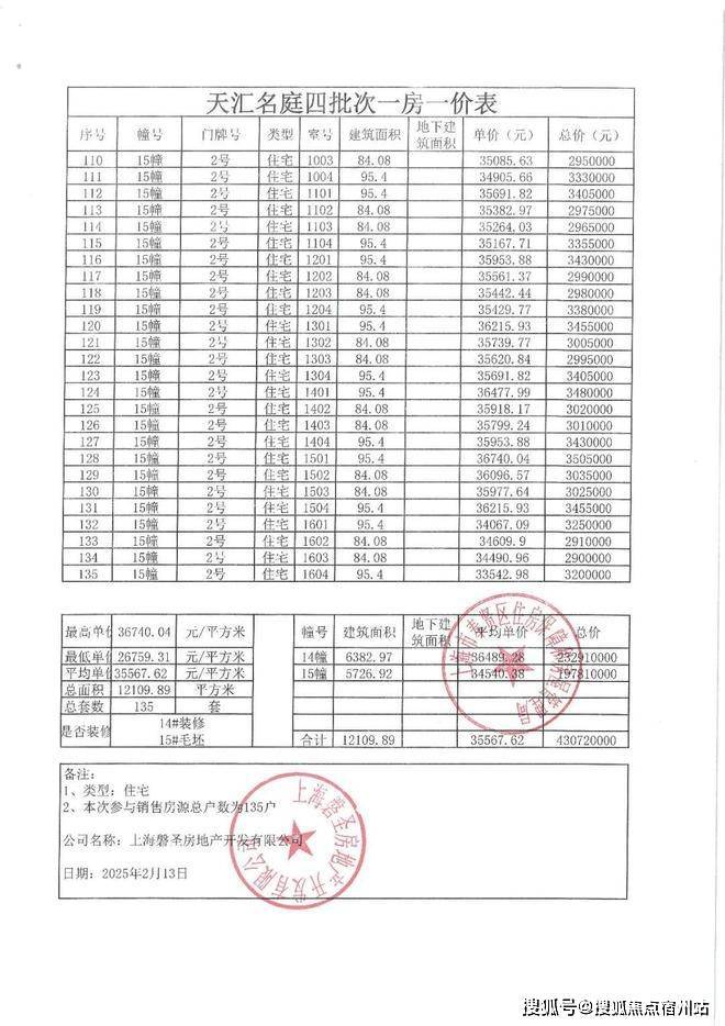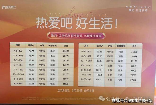 象屿江湾悦府一房一价表: