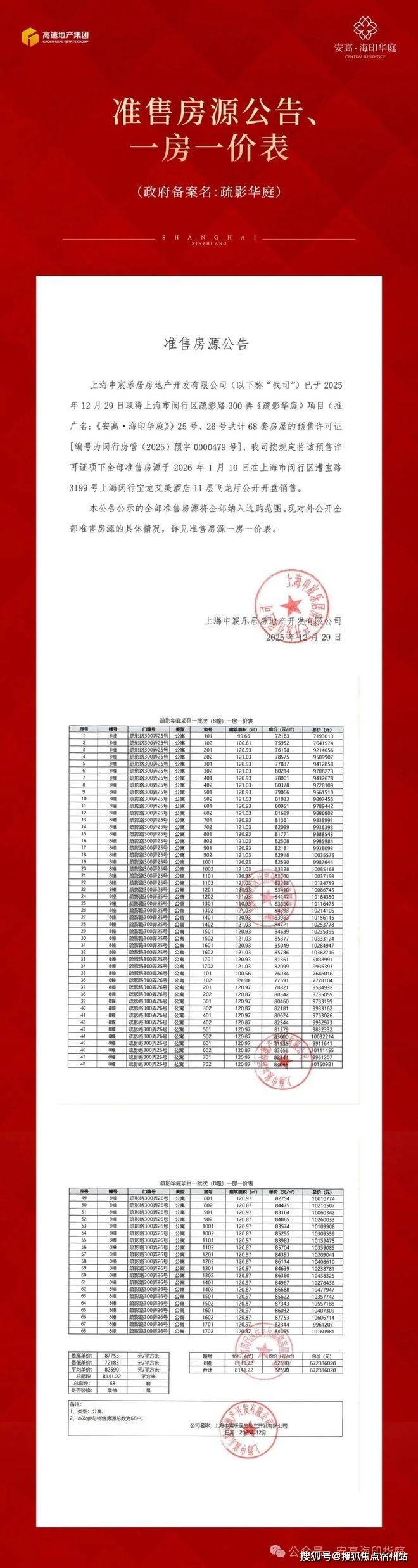 1、本资料为要约邀请,一切有关本项目及房屋的具体信息、图文、数据和买卖双方的权利义务以书面合同及政府最终审批文件为准。本项目推广名为“安高海印华庭”,政府备案名为“疏影华庭”,开发公司为:上海申宸乐居房地产开发有限公司,预售证号:闵行房管(2025)预字0000479号;
