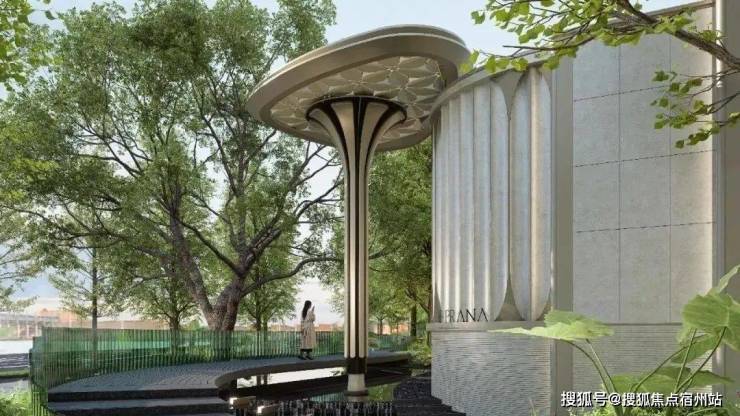 项目恢弘大气的门头,项目设计师以浮岛为灵感,将几根立柱化作悬浮的雕塑,撑起一片轻盈的仪式感。
