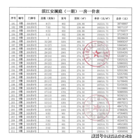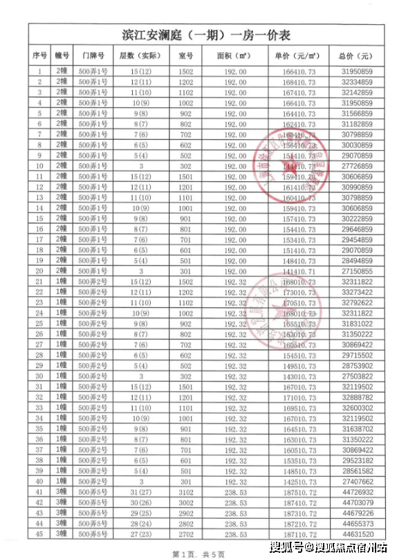 首批次房源一房一价表