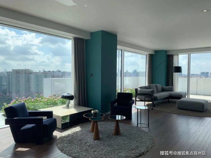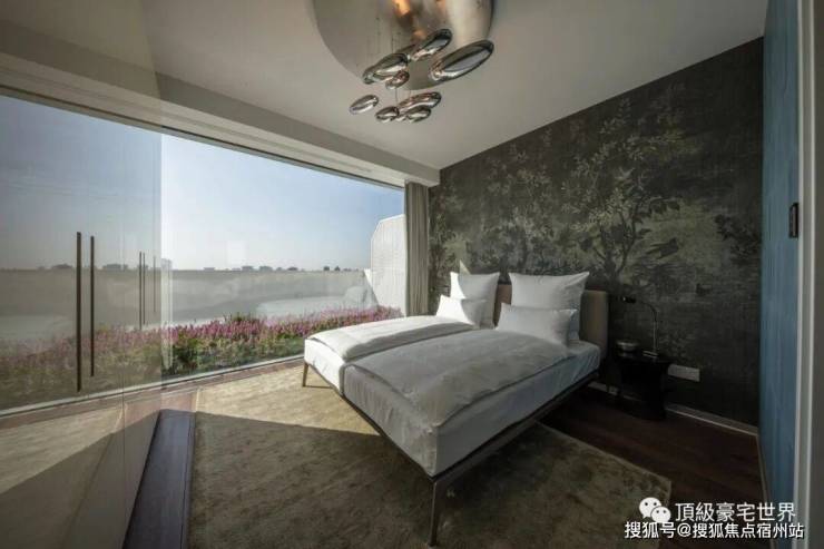 室内还搭配了外置比利时Renson遮阳系统,防晒防虫防偷窥,满满的黑科技。值得一提的还有豪宅的全长32米全景阳台,当5米宽的玻璃幕墙缓缓开启,整个过程极具仪式感。