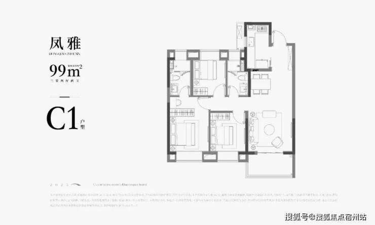 约99㎡三房两卫则注重私密性需求,主卧带独立卫浴,满足改善型家庭的需要。
