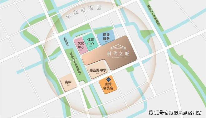 华润华发的第二次联手,打造了约30万方的时代之城,围绕这座“城”,规划了包括山姆会员店、文化用地、教育用地、商业用地以及宽百米的花园江绿带。