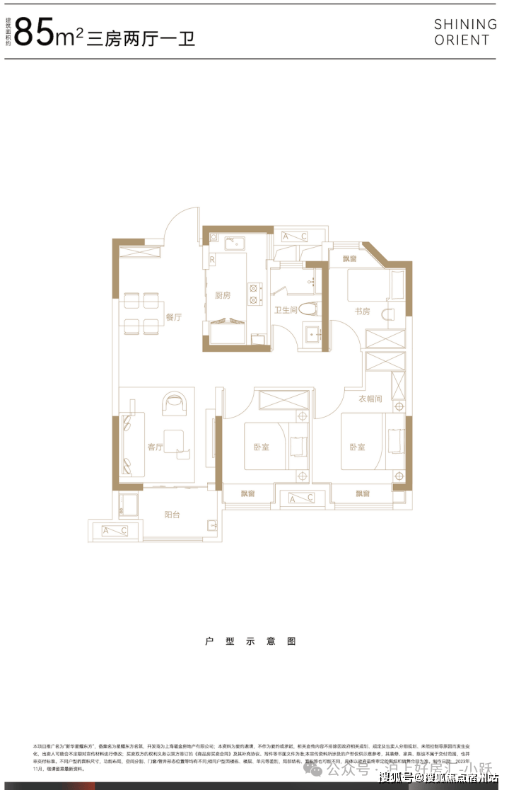 总体来看,85㎡户型上车门槛不高,户型空间舒适,格局方正,一点也不局促,很适合预算有限的小年轻刚需上车。