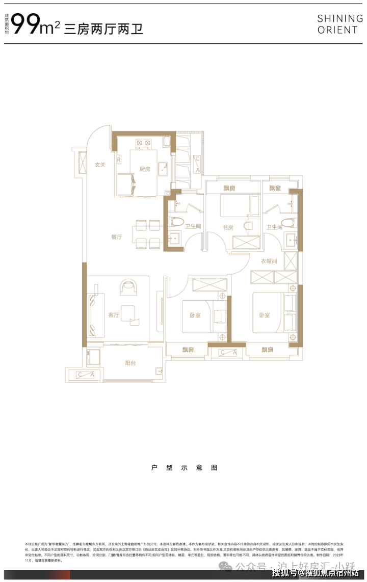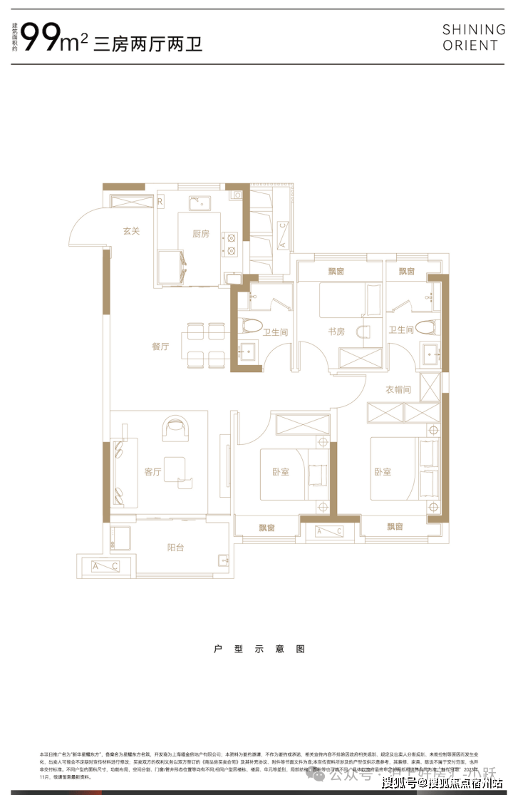 建面约99平㎡三房两厅两卫