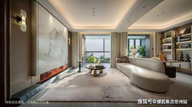 样板间不是传统“金碧辉煌”的,而是真正用艺术品味去打造。比如弧线,是建筑语言中极具表现力的元素,在室内贯穿始终。✅✅江湾金茂府售楼处电话:400 - 882 - 4258✅✅客厅吊顶一眼匠心,多层次处理,辅以弧形工艺,非常优雅。