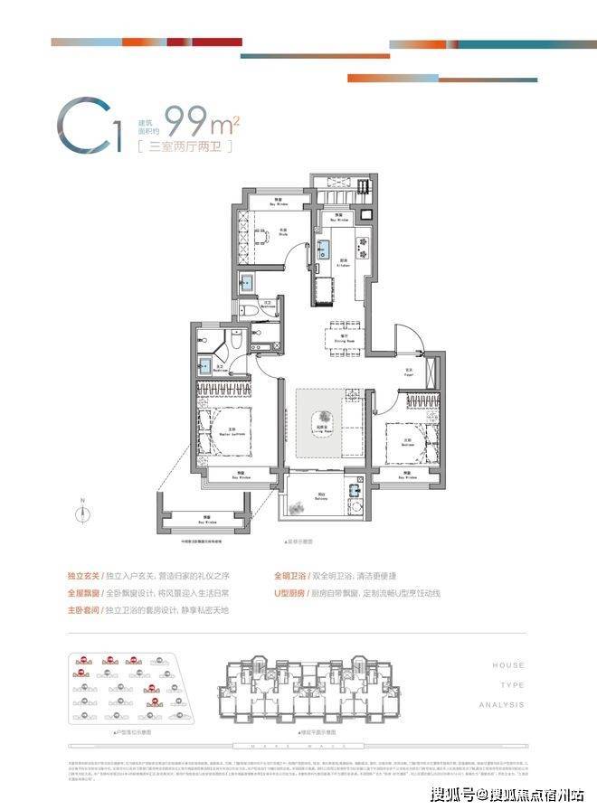 建面约99㎡B户型客餐厅配置超大尺度横厅✅✅招商时代潮派售楼处电话:400 - 8824 - 258✅✅全卧室飘窗就连主卫也配置了一个飘窗
