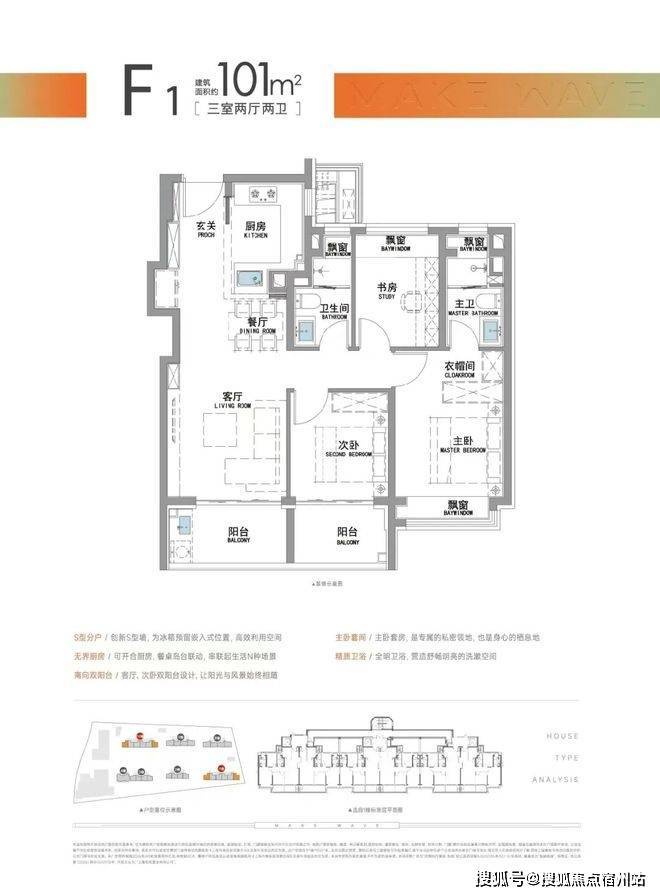 建面约89㎡3房东边套主卧配置约270°双向采光飘窗、S墙设计✅✅招商时代潮派售楼处电话:400 - 8824 - 258✅✅