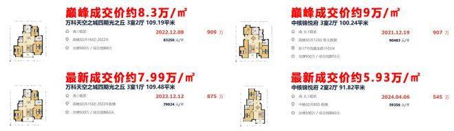 同区域没有新房,我们取样了同样紧邻莘庄地铁站的好世鹿鸣苑,✅✅招商时代潮派售楼处电话:400 - 8824 - 258✅✅巅峰成交价直逼11.1万/㎡,如今最新成交价仅约8.3万/㎡。