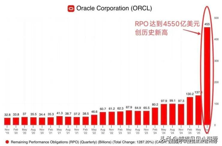 甲骨文最新公布的业绩指引显示:公司剩余履约义务(RPO)同比增长359%,达到4550亿美元,相当于25财年营收的8倍。